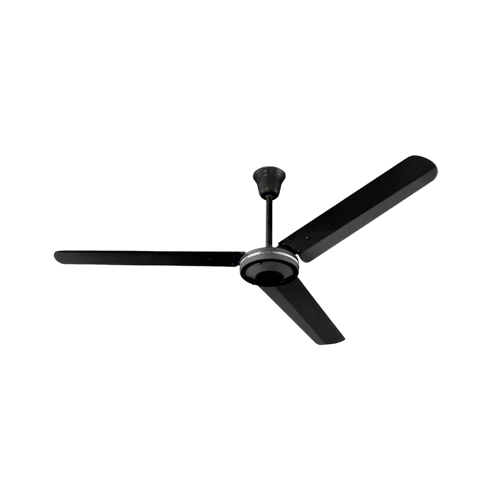 Μοντέρνος ανεμιστήρας από μέταλλο και 3 πτερύγια σε μαύρο χρώμα. Ο ανεμιστήρας μπορεί να συνδεθεί με διακόπτη τοίχου (δεν περιλάμβανεται).
