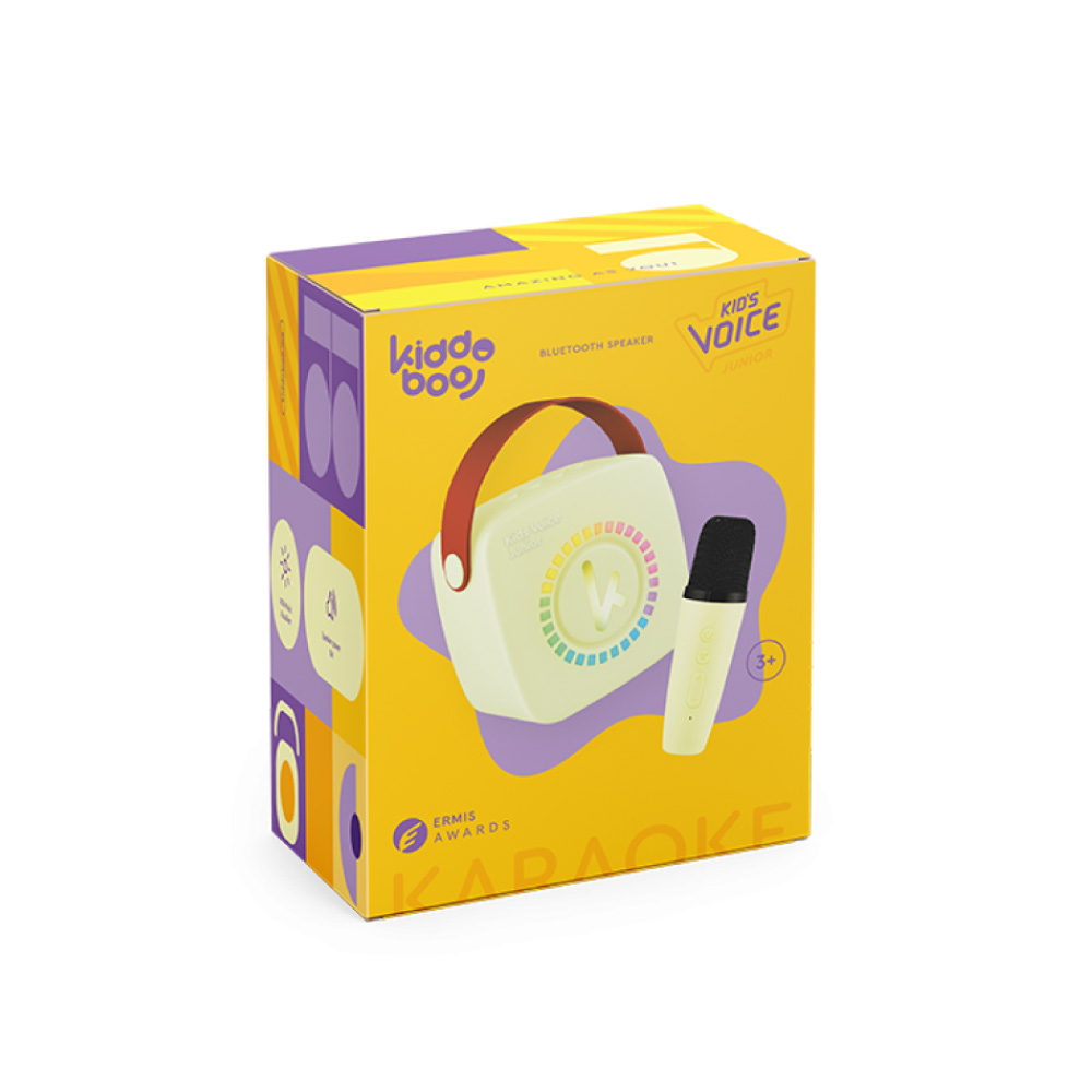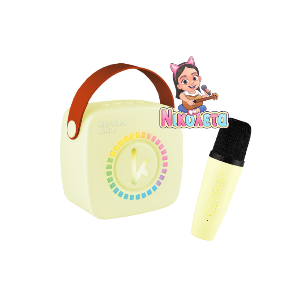 Το παιδικό καραόκε Kiddoboo Mini Yellow με ασύρματο μικρόφωνο και μουσική βιβλιοθήκη NikoletaTV προσφέρει διασκέδαση παντού! Με ισχύ 5W, Bluetooth 5.3 και φωτισμό RGB, μετατρέπει κάθε στιγμή σε χαρούμενο μουσικό πάρτι.